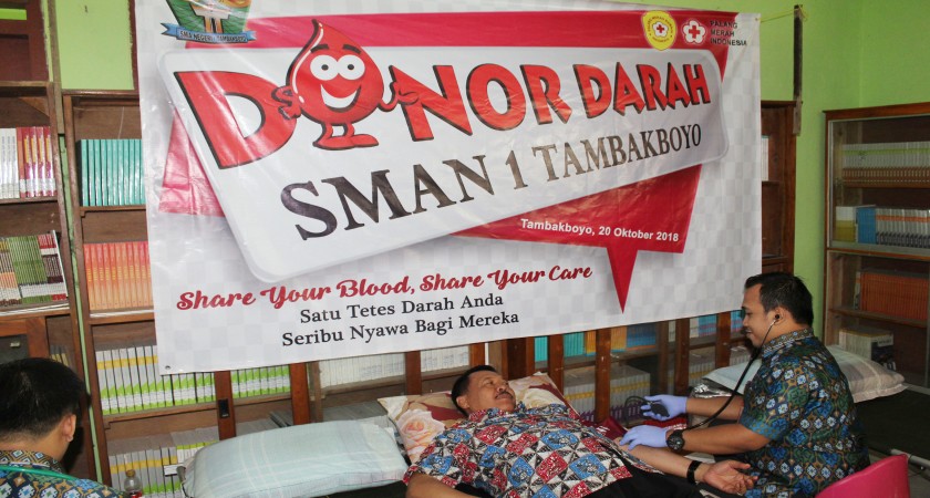 Kegiatan yang mengusung tema "Share Your Blood, Share Your Care" dengan motto "Satu Tetes Darah Anda Seribu Nyawa bagi Mereka" ini berlangsung mulai pukul 07.30 sampai 12.00 WIB. Sebagai pembuka, pendonor pertama diprakarsai oleh Bapak Kepala SMAN 1 Tambakboyo, Drs. NURYONO, M.Si. Setelah itu, dilanjutkan oleh Bapak/Ibu guru dan siswa SMAN 1 Tambakboyo. Sedangkan dari PMI unit Donor Darah Kab. Tuban, dalam hal ini mengirimkan 3 petugas kesehatan untuk pelaksanaan donor darah di SMA Negeri 1 Tambakboyo. Salah satunya adalah Kasubid Teknisi Pengambilan Darah, Bapak David Asepta Hermanto AP. TTD.